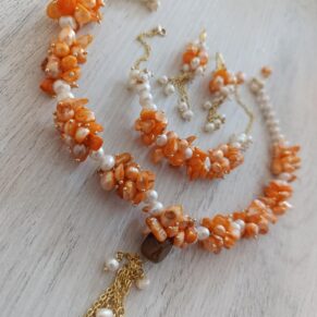 Be the first to review “Parure dents de mer bleu en perle”