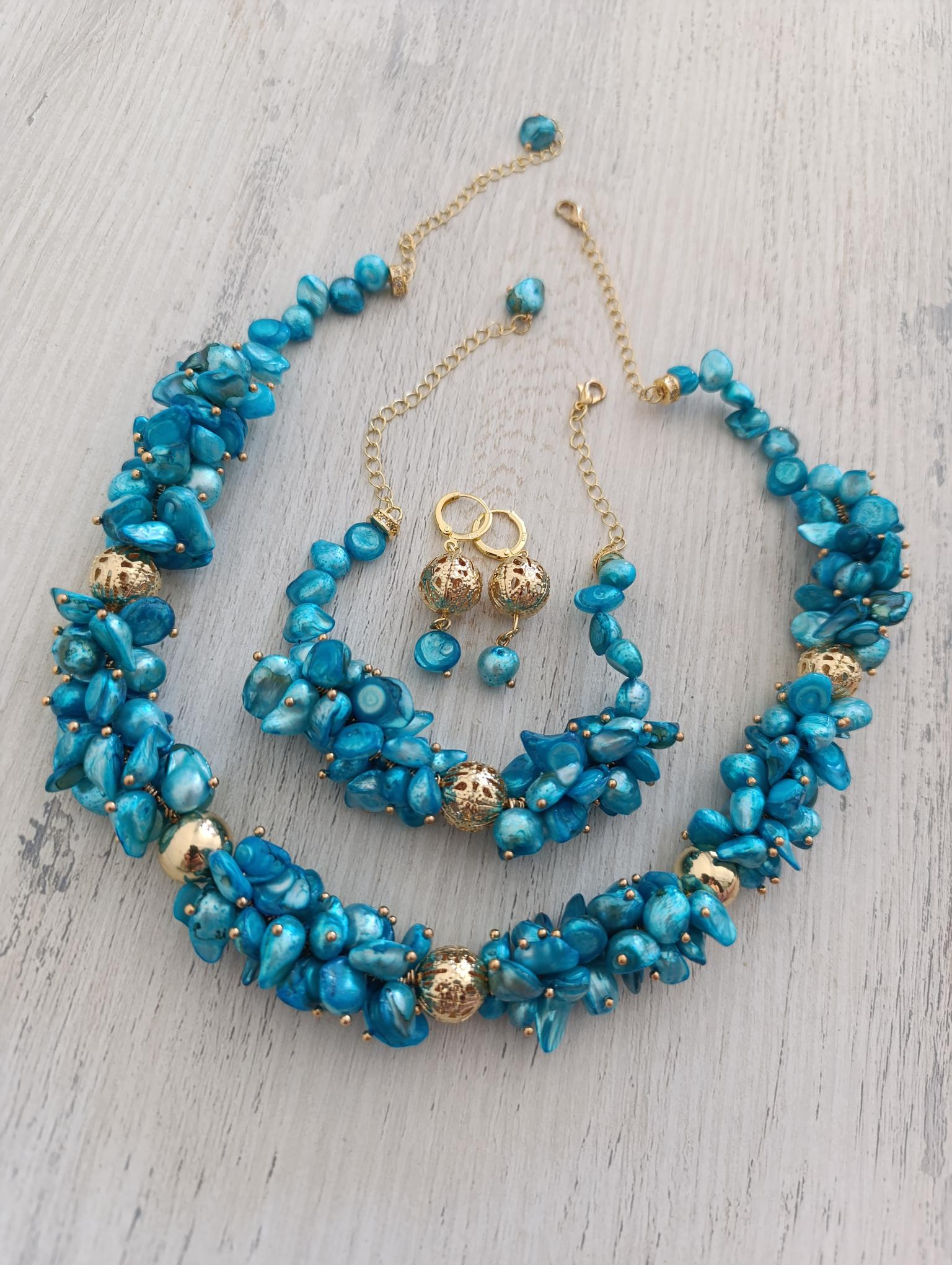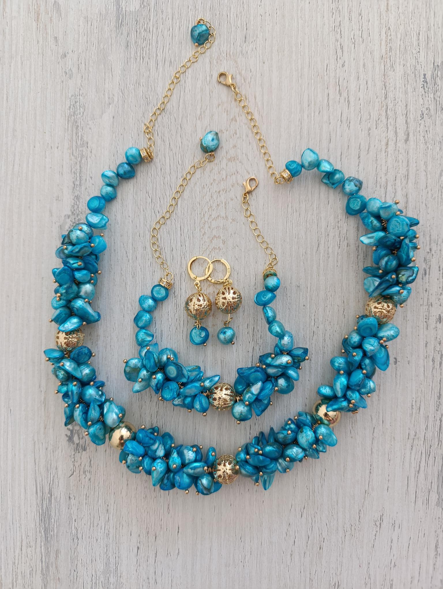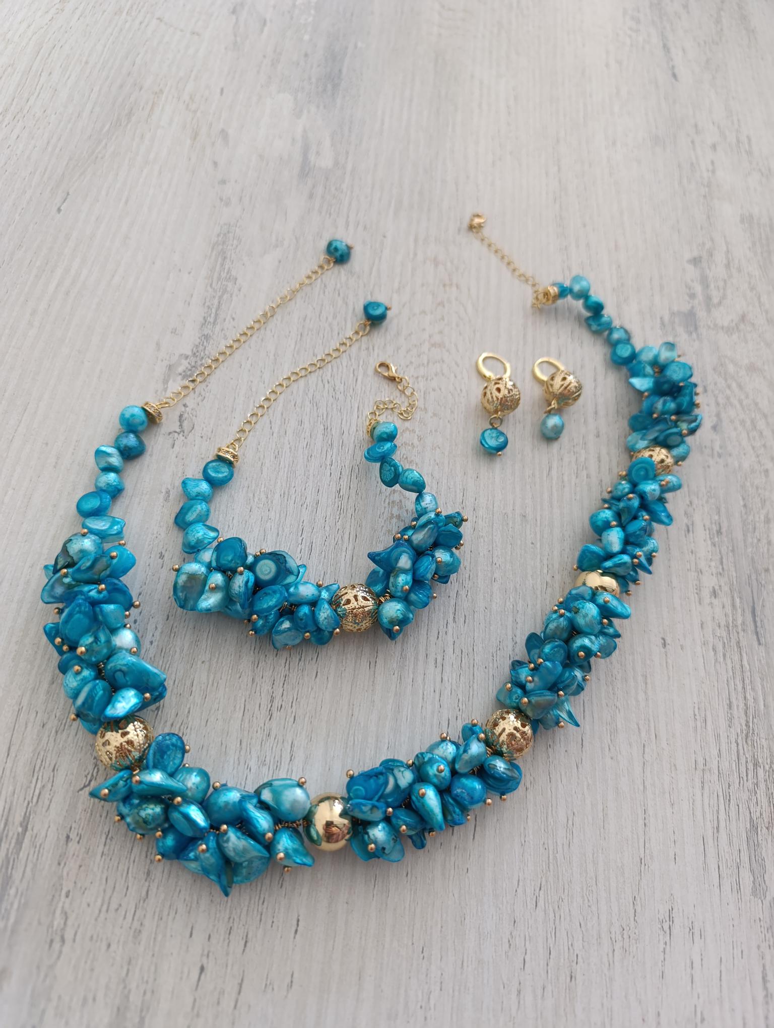Parure dents de mer bleu en perle