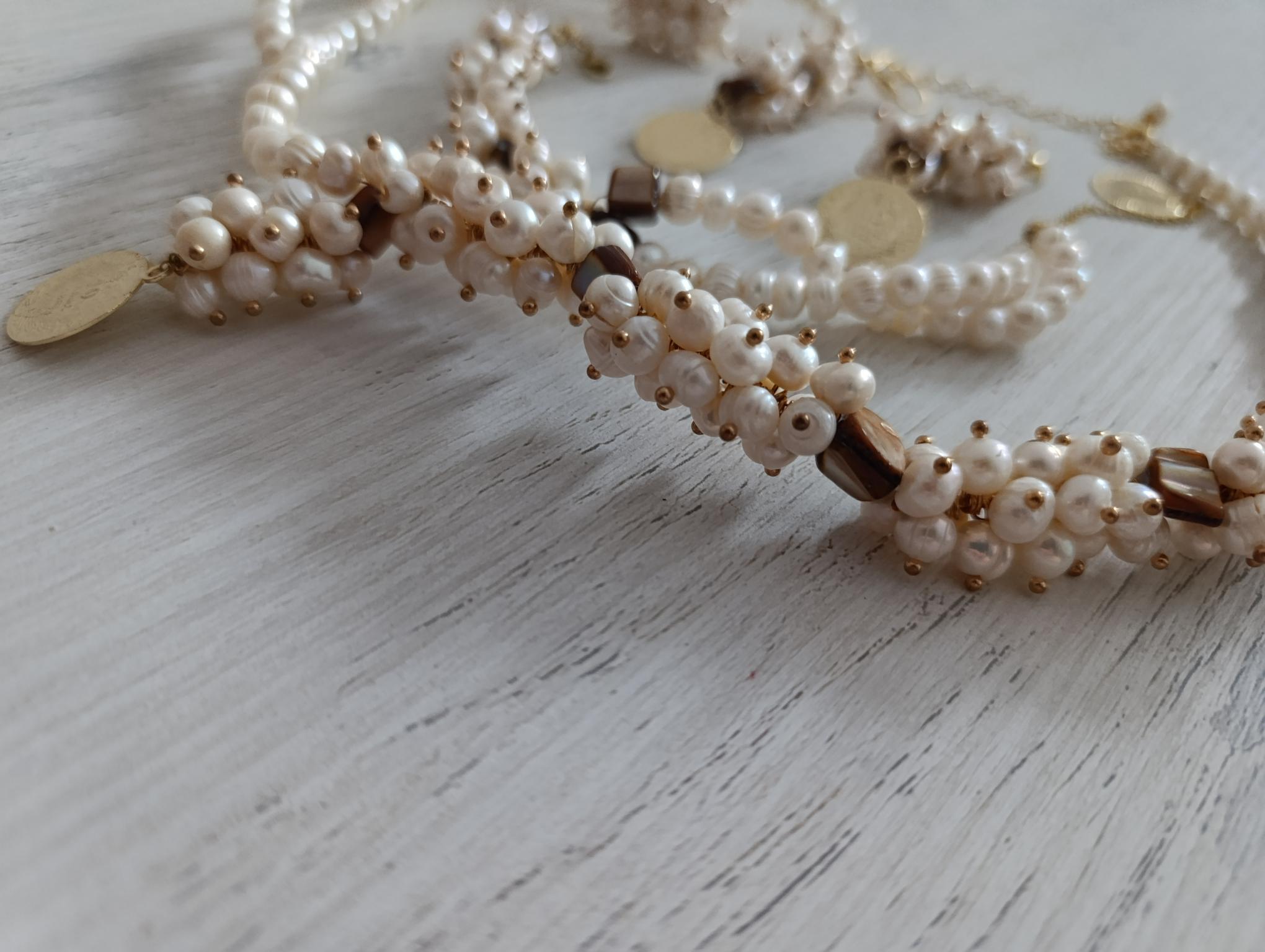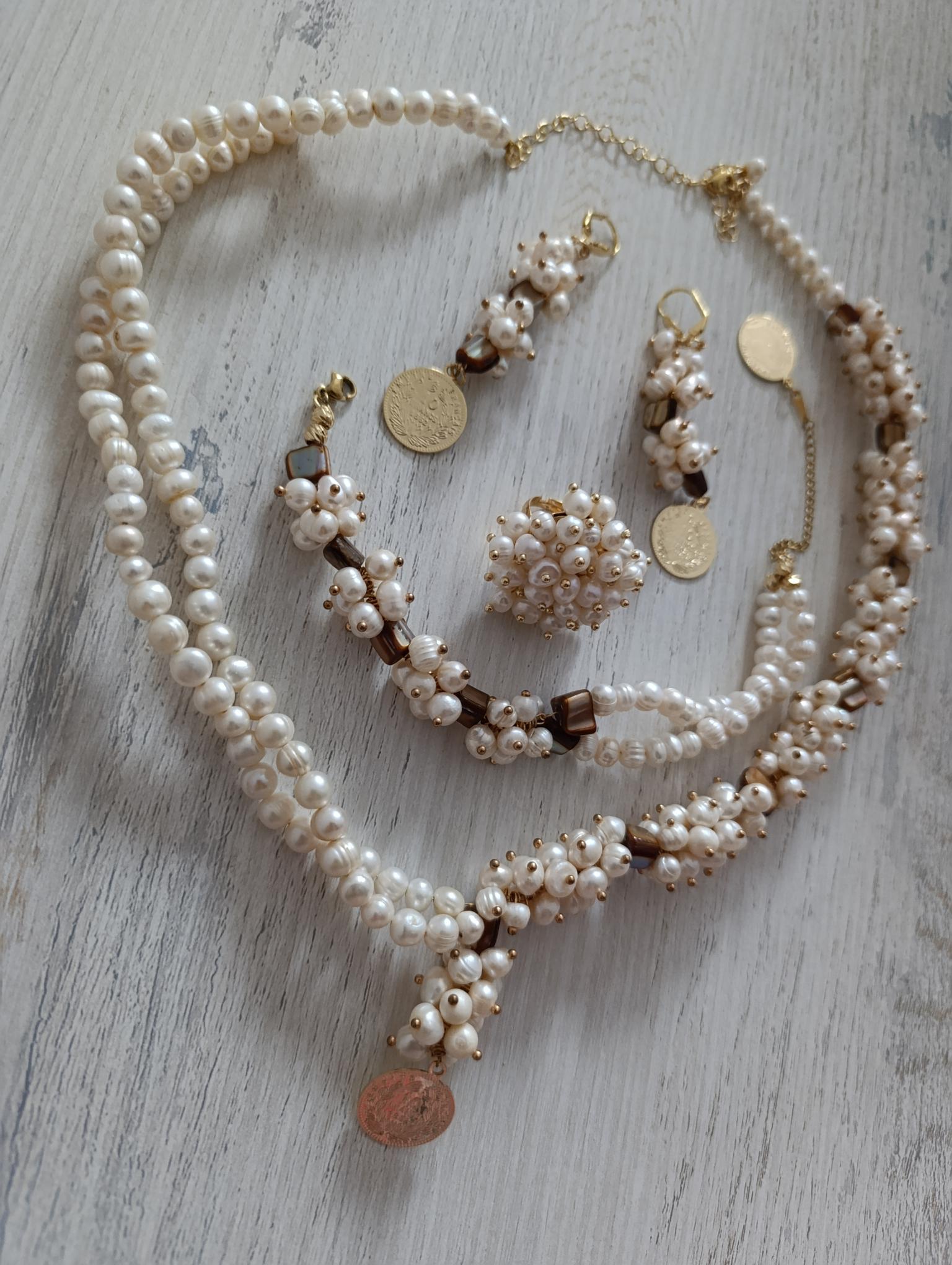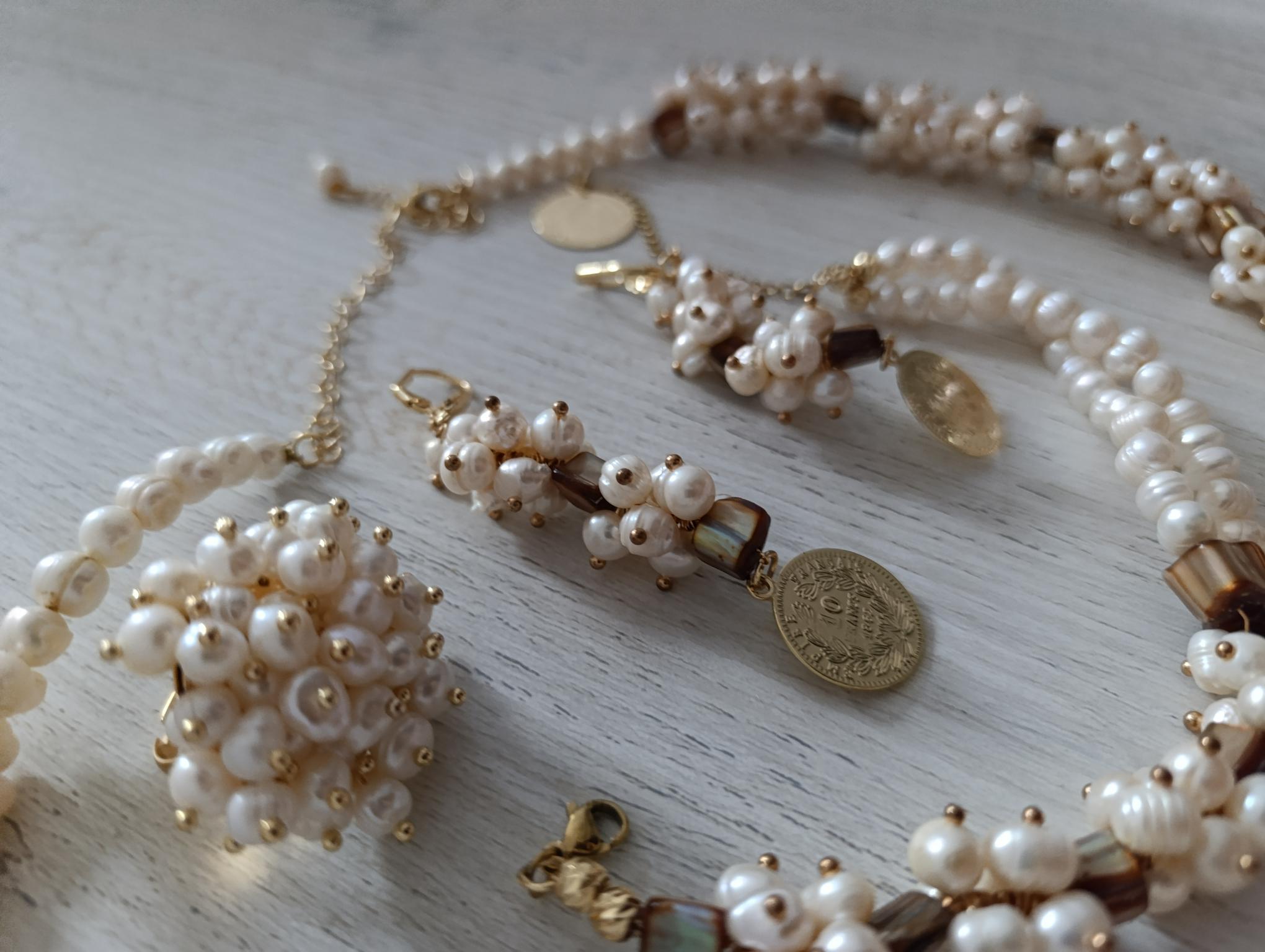 Parure perle blanche avec nacres et plaqué or