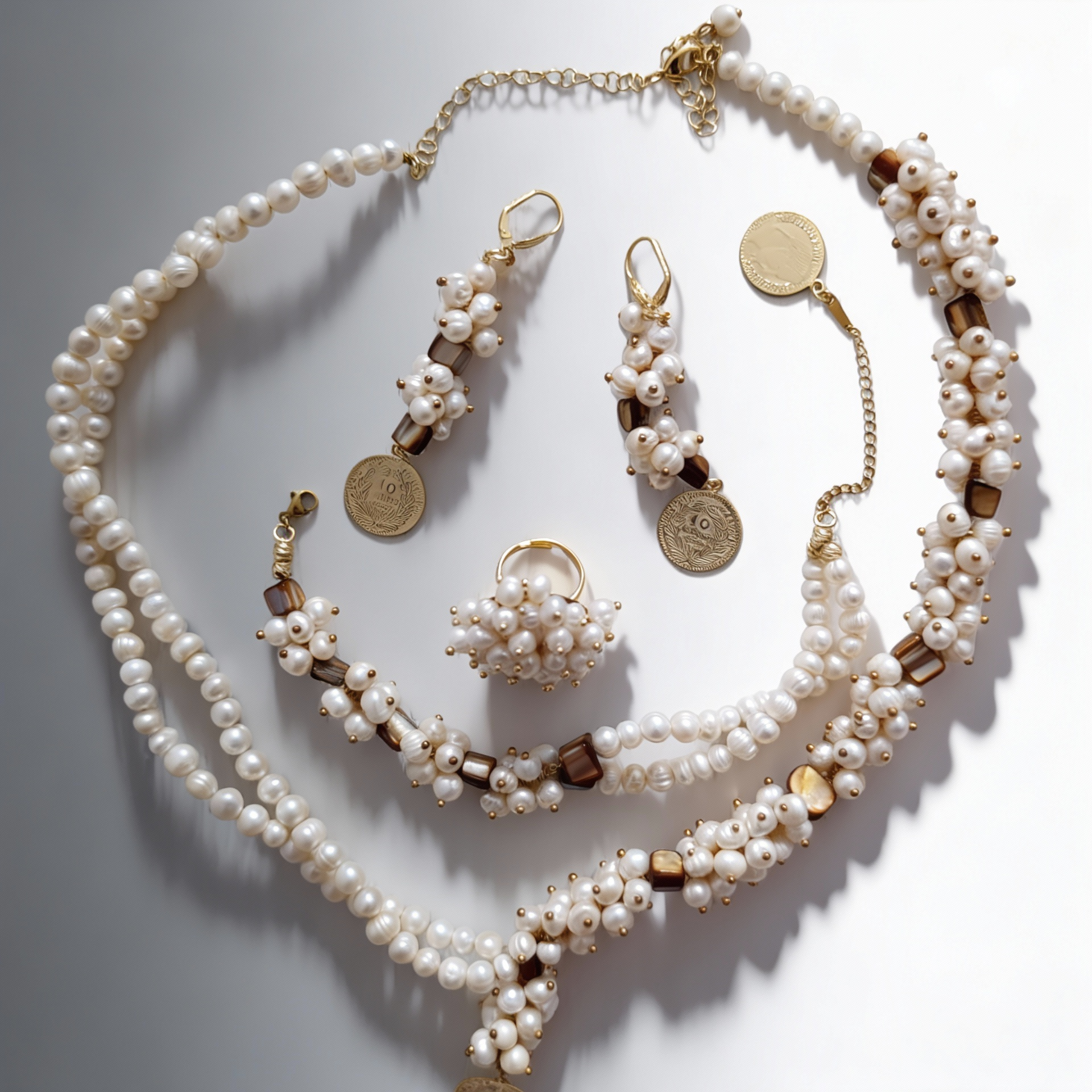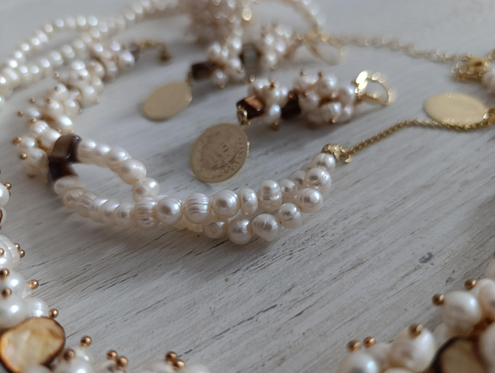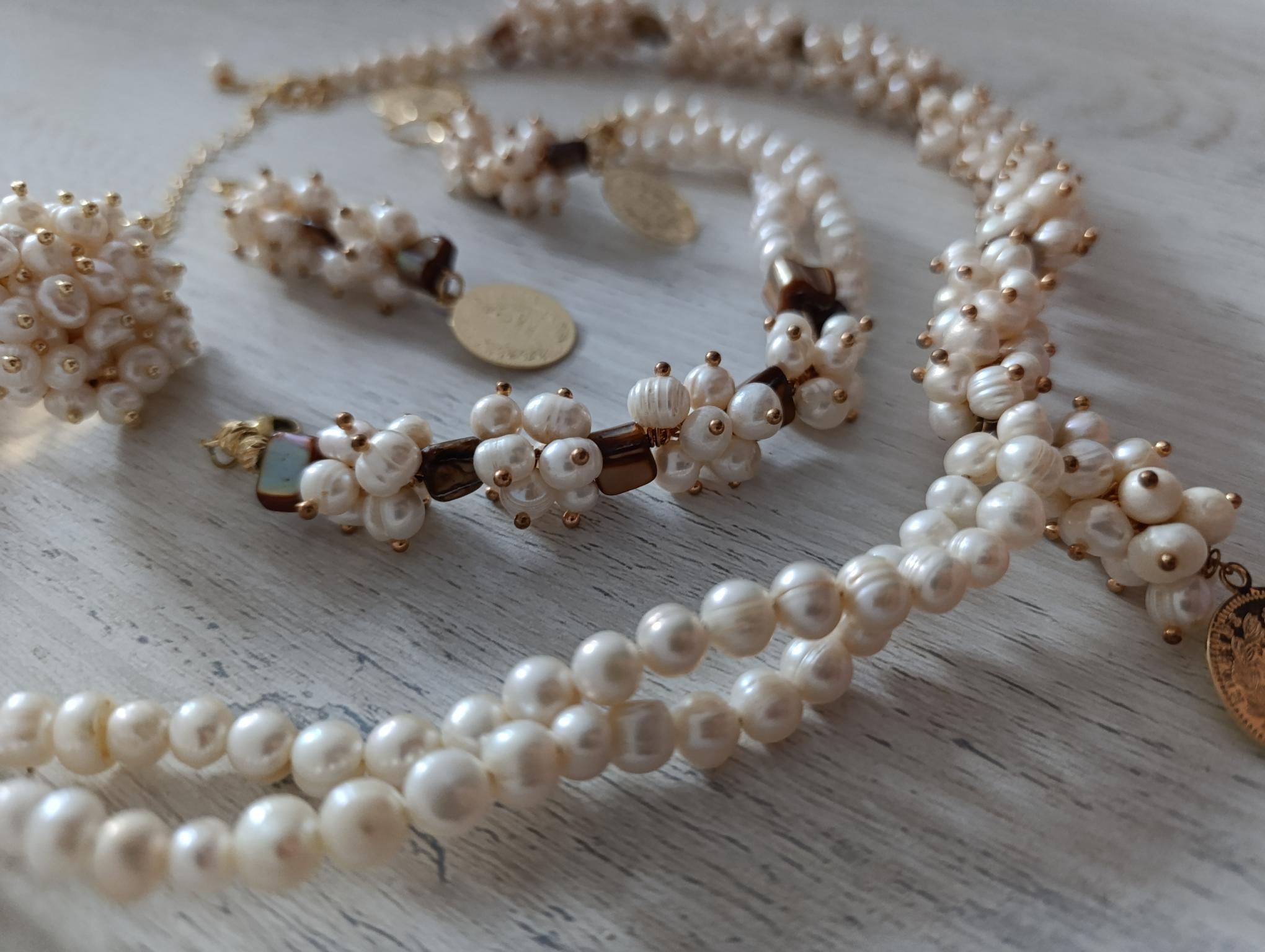 Parure perle blanche avec nacres et plaqué or