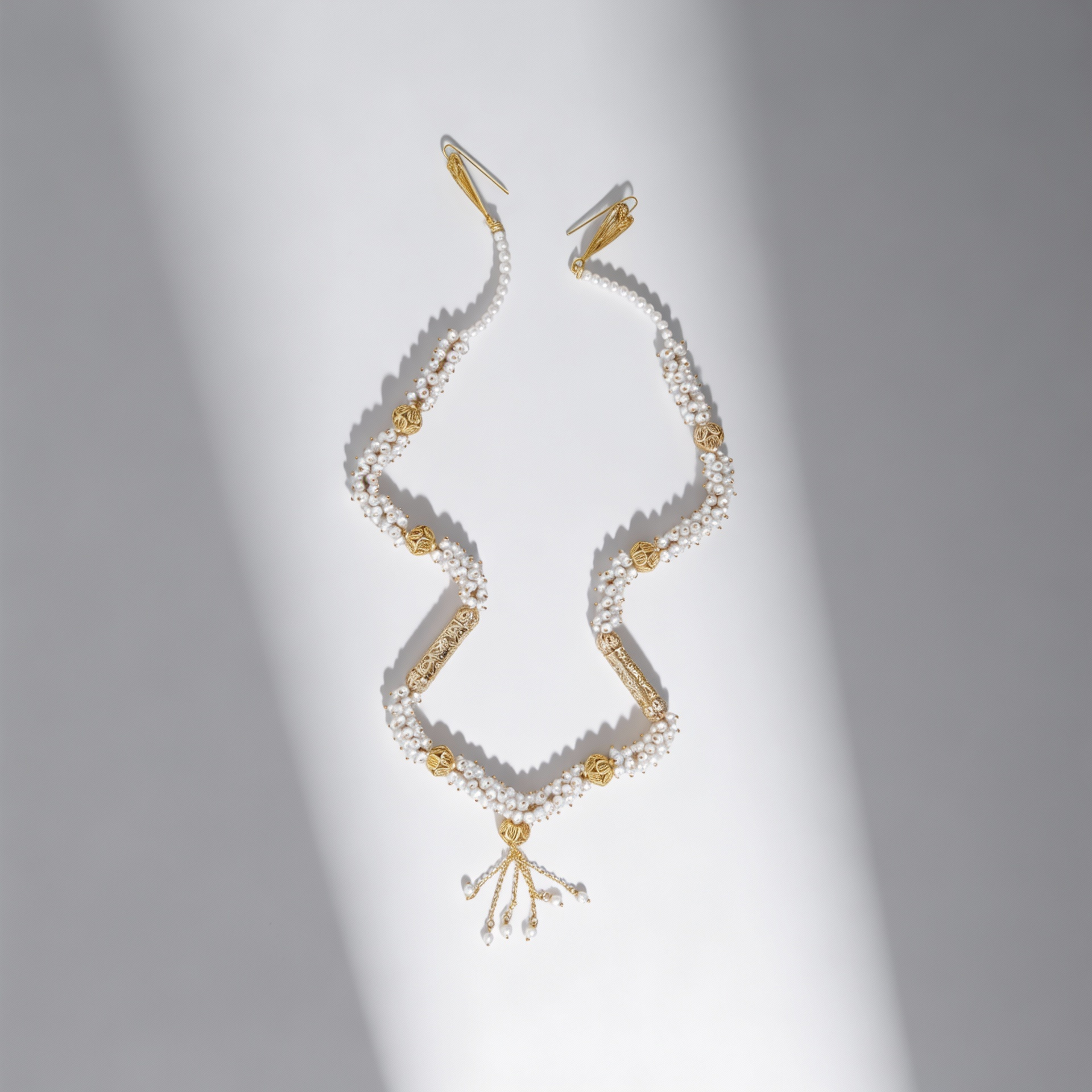 عقد طويل من لؤلؤ مايوركا مع البلاكيور