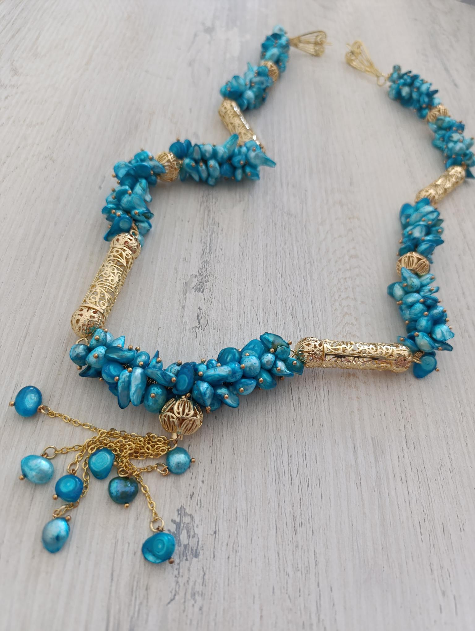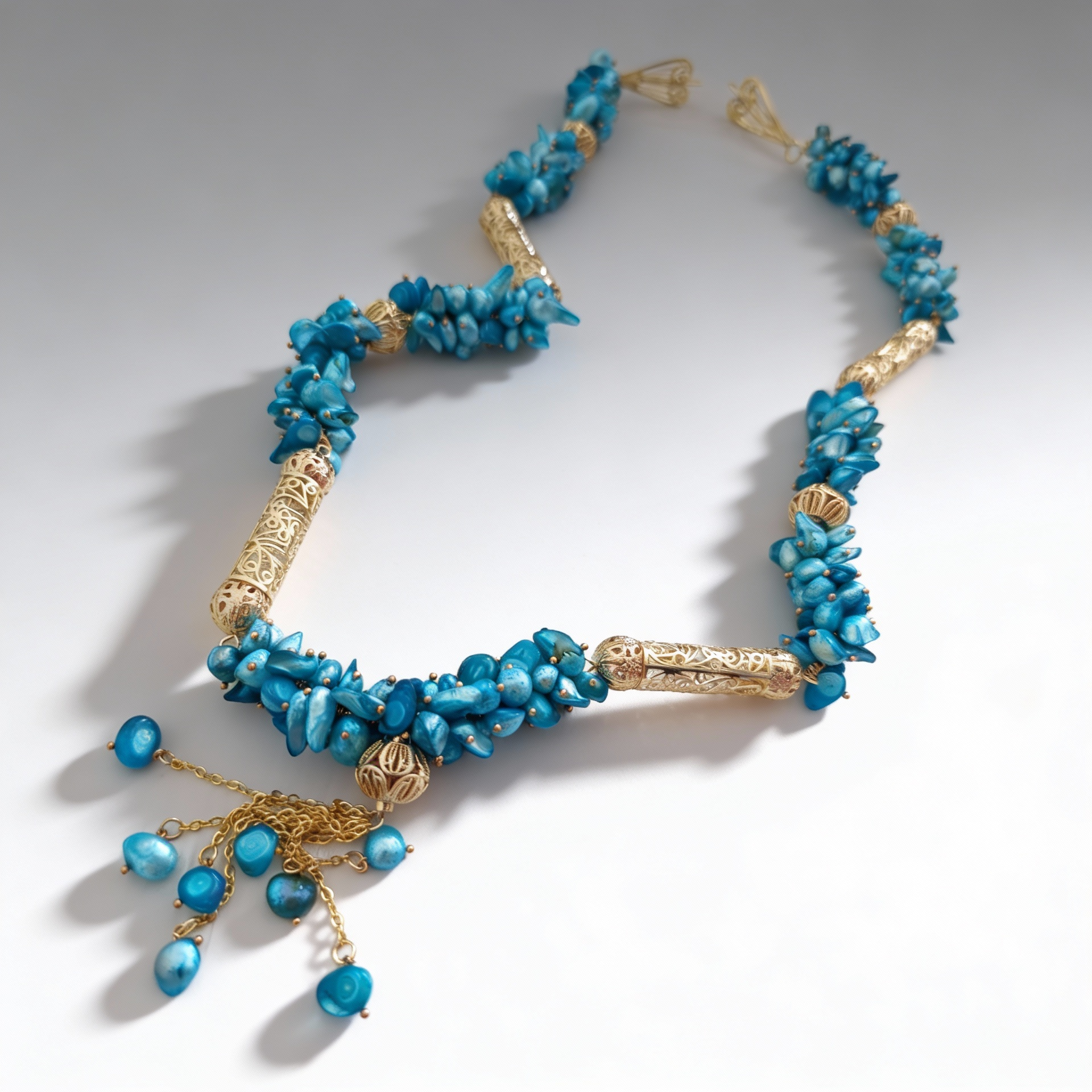 عقد طويل من حجر أزرق بشكل “أسنان البحر” مع البلاكيور