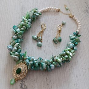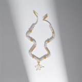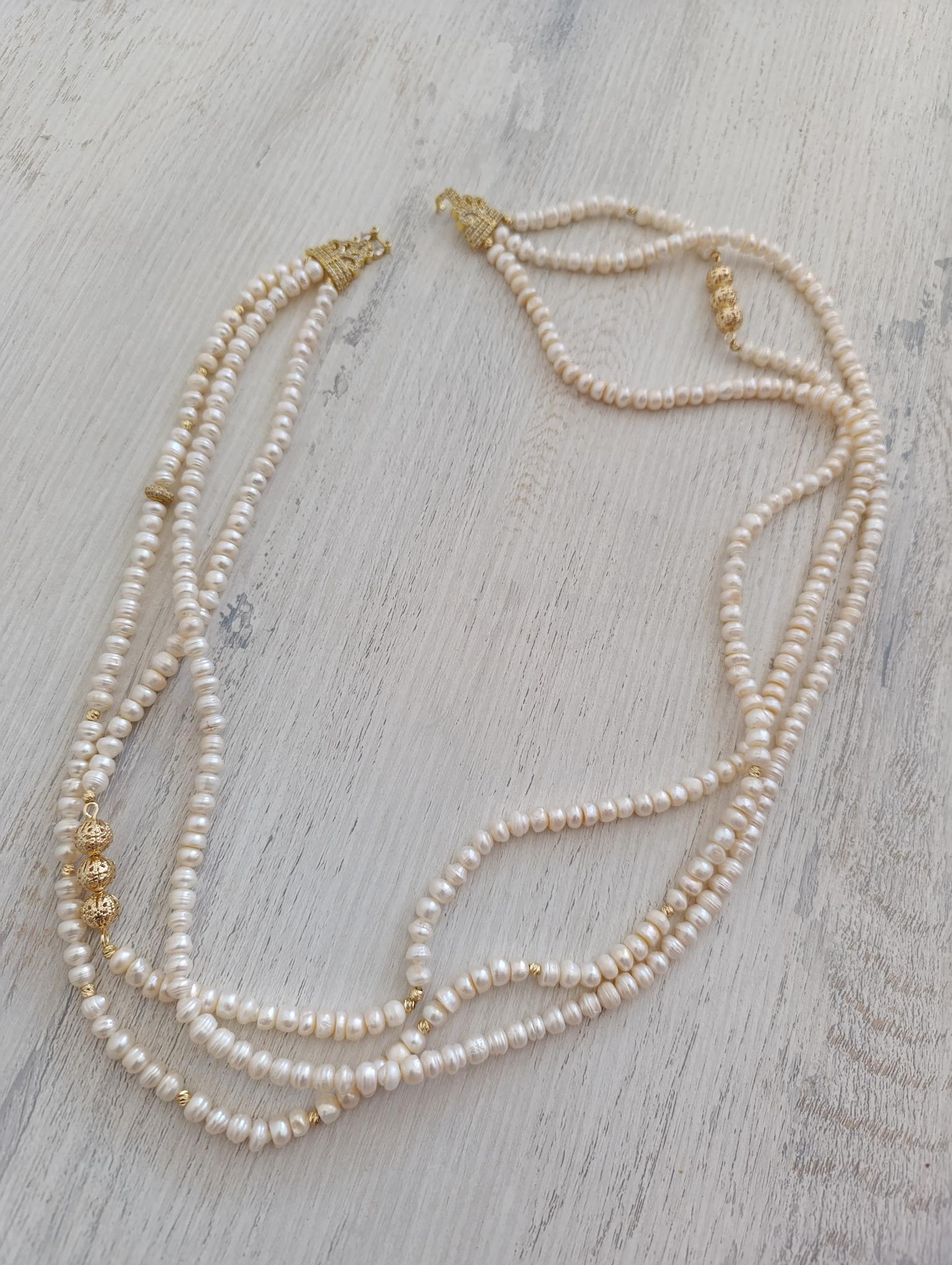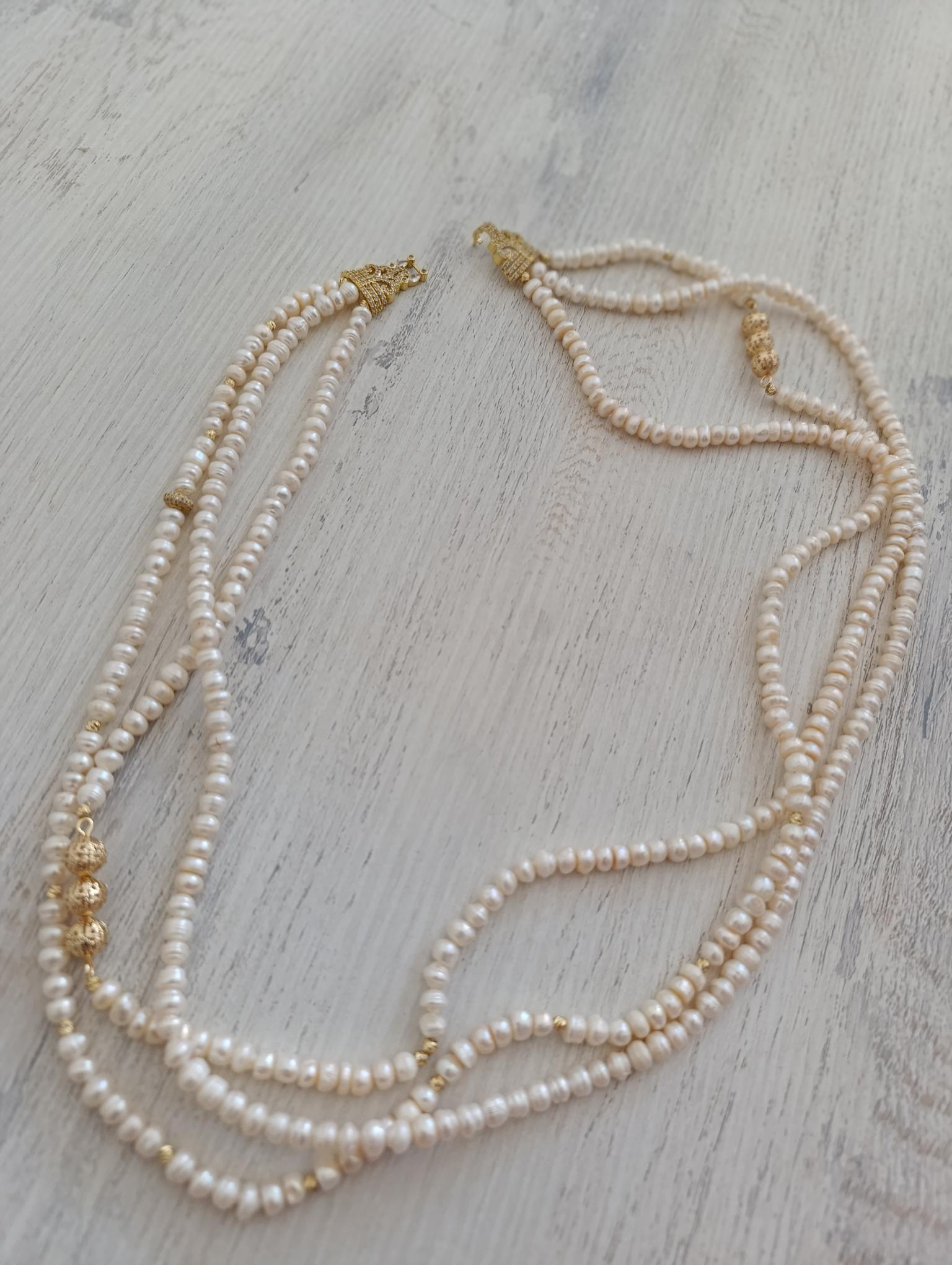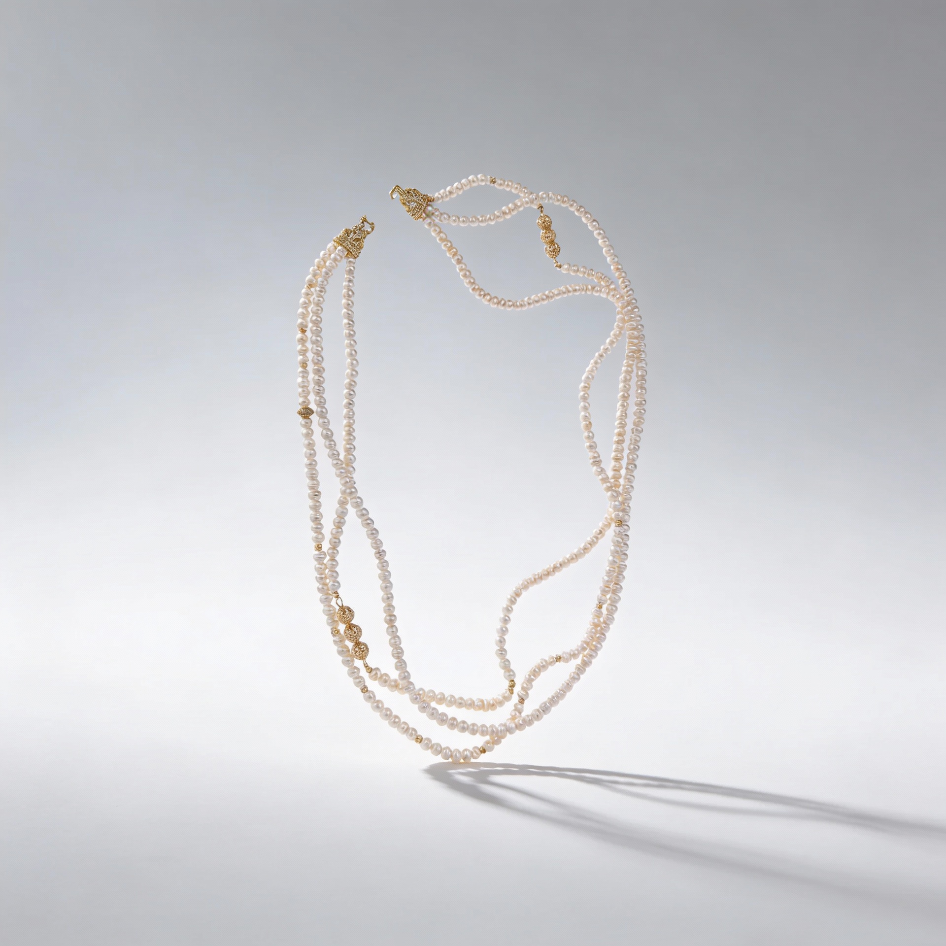 عقد طويل متعدد الصفوف من اللؤلؤ الأبيض مع البلاكيور