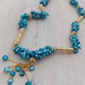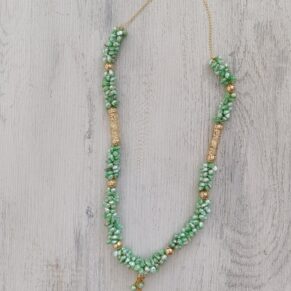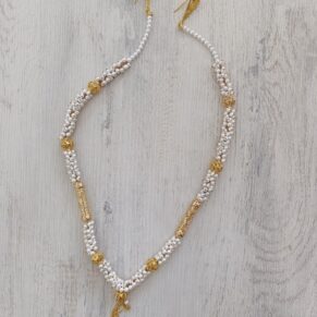 Sautoir multi-rangs en perles blanches avec plaqué or
